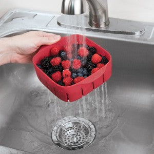Clean and store your berries easily with this all-in-one colander and storage container. Large holes and additional vents on the side maximize air flow while keeping your berries fresh.