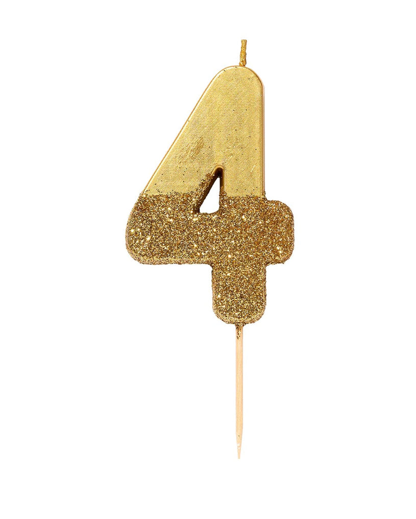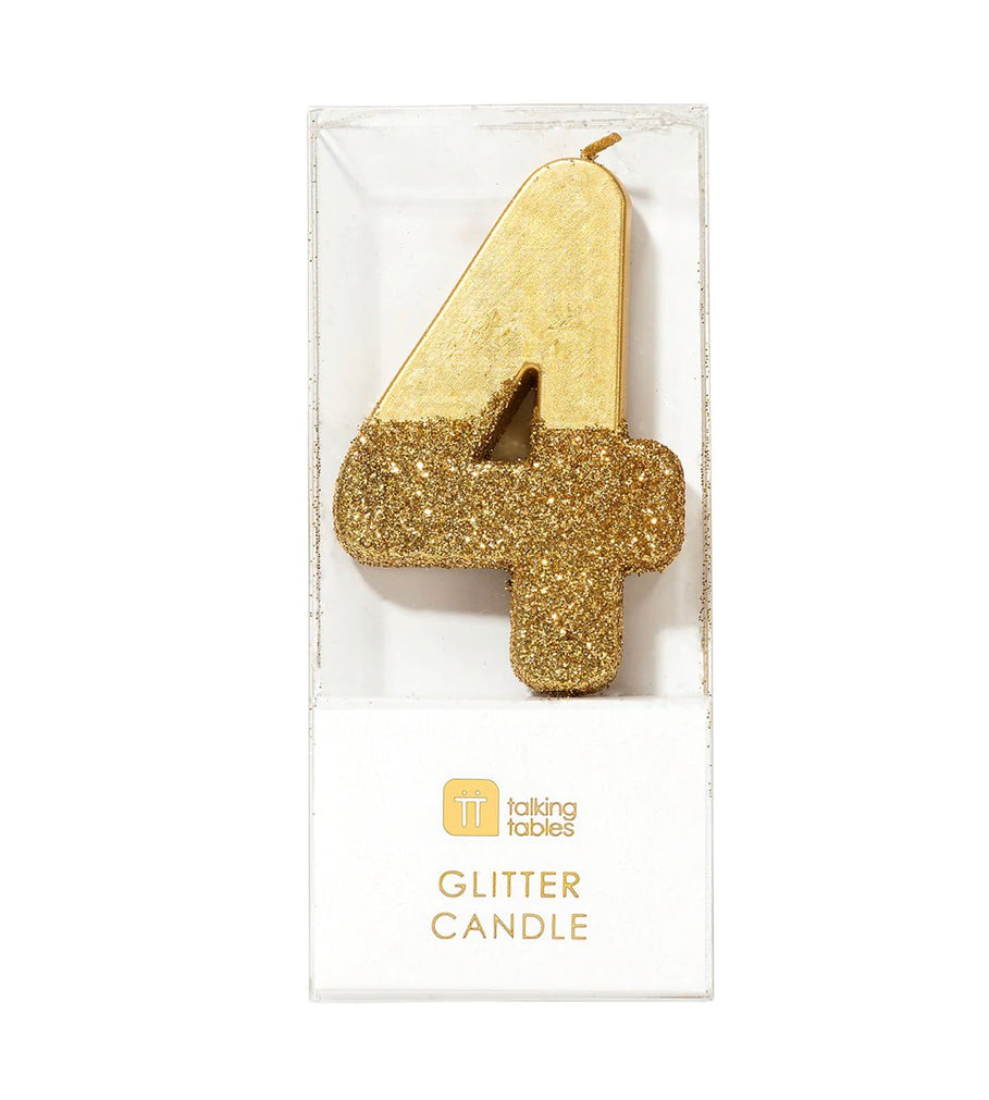 Celebrate your special big day with this number 4 gold glitter dipped candle. Mix and match with other numbers