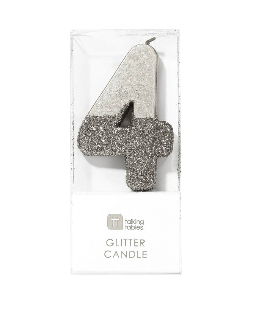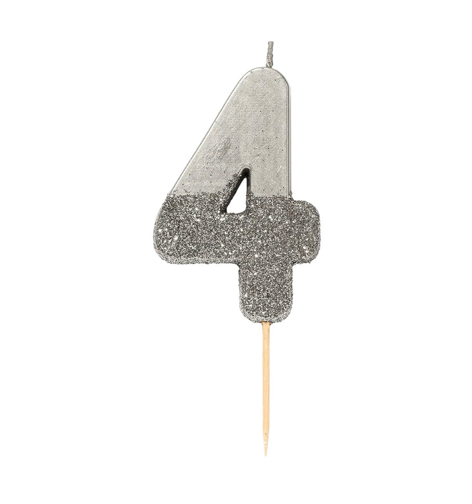 Perfect for a 4th birthday party or mix and match this number silver candle with other numbers.