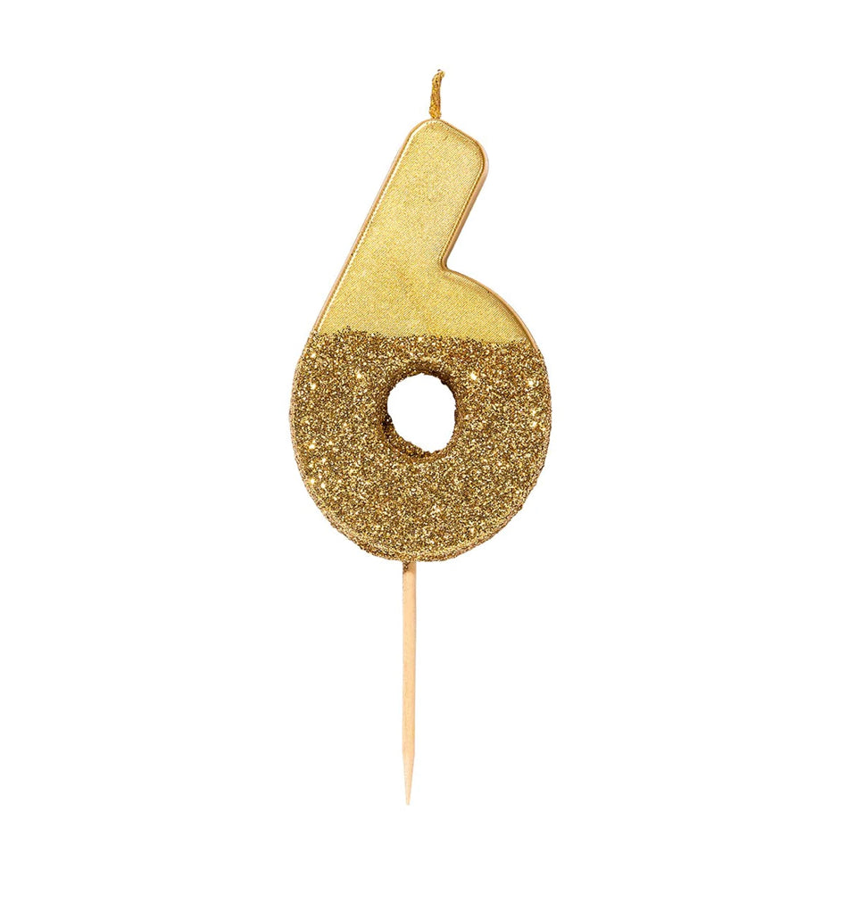Celebrate your special big day with this number 6 gold glitter dipped candle. Mix and match with other numbers